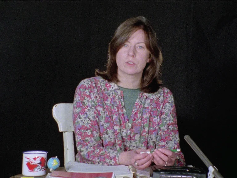 AG – The constant 360-degree pan doesn’t allow for a fixed gaze. Would it be too simplistic a reading to draw a line between this and your declamation of a fixed male gaze in ‘Visual Pleasure and Narrative Cinema’, and to say that your writing had, maybe even without you realising, informed your filmmaking? LM – I think definitely there was that sense of resisting a grounded gaze: an identifiable point of view. That was something we were deeply committed to, both for avant-garde and for feminist strategy.