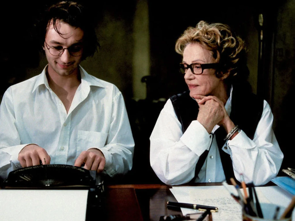 Cet amour-là (Josée Dayan, 2001) was not especially well received on either the festival circuit or commercially, but there is a certain pleasure fans of Marguerite Duras will take from watching the film. In it, Jeanne Moreau plays Duras in the story of her incipient affair with her much younger fan, lover, collaborator, and carer, Yann Andréa. With its sweeping soundtrack (penned by Angelo Badalamenti of Twin Peaks fame) and the tonal vacillation between sentimentality, tragedy and gentle comedy, the film feels too melodramatic to be an homage to Duras’s filmmaking style – although Dayan does pay visual tribute to the extended seascape shots which mark many of her films (La Femme du Gange (1974) and Agatha et les lectures illimitées (1981)). No: the real pleasure lies in seeing “Duras” onscreen. The representation of an ageing, alcoholic genius risks reducing Duras to a feminine version of a biographical trope, but the casting avoids this entirely. Moreau’s Duras is wonderful: her language is elliptical and full of irony, used to gently mock the jejune, solemn Yann (Aymeric Demarigny). The strength of her performance also serves to reduce some of the perspectival imbalance to which we are alerted in the credits (the script is adapted “ librement ” from Andréa’s journals). If Andréa narrates the majority of the film, Moreau is Duras, down to the Gitane-stained vocal chords and knitted waistcoat.