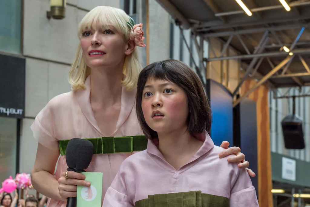 Okja also offers us two contrasting portraits of corporate womanhood in the Mirando twins Lucy and Nancy, both played by Tilda Swinton à la Hail, Caesar. Nancy, unseen until the film’s last act, is a hard-nosed, Thatcher-a-like, a pure caricature of the icy businesswoman. Nancy remains un-nuanced and as such uninteresting but, in the character of Lucy, Bong gives us more to chew on. Lucy could easily have been a second, though contrasting pantomime villain: the superficially friendly but soulless CEO of the evil company. Instead, we see Lucy candidly discussing her belief in the project behind closed doors, her self-doubt in her dressing room and the crushing expectations of both Nancy and her father, Mirando’s former head.